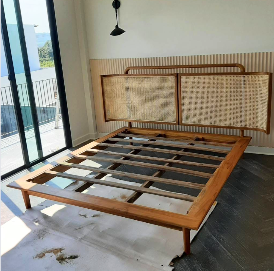 เตียงนอน เตียงนอนไม้สัก เตียงไม้สักผสมหวาย